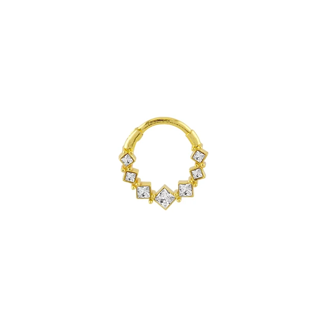Gold-Plated CZ Diamond Hinged Septum Ring - 16 Gauge