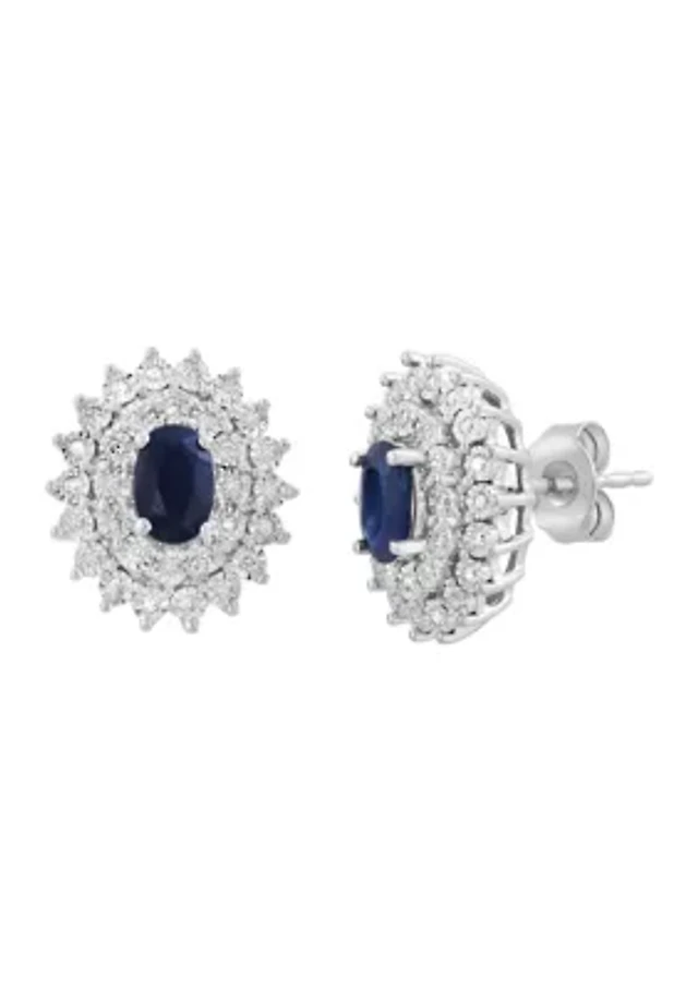 Sapphire (3 ct. t.w.) and Diamond (1-1/5 ct. t.w.) Earrings in 14k White Gold