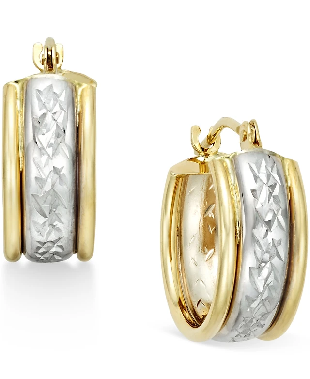 Diamond-Cut Hoop Earrings in 14K Tri-Tone Vermeil