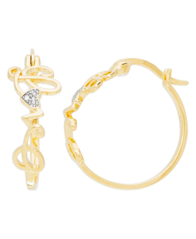 Diamond Accent Love Hoop Earrings in 14K Gold Plate