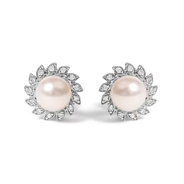 Champagne and White Diamond Accent Stud Earrings in Sterling Silver