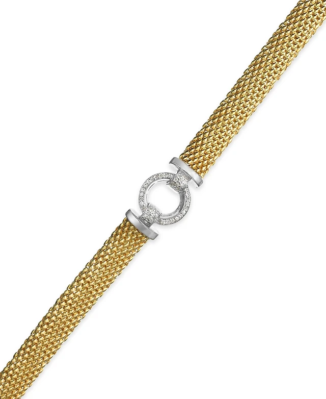 Cubic Zirconia Heart Cluster Mesh Bolo Bracelet in 10K Solid Gold - 9"