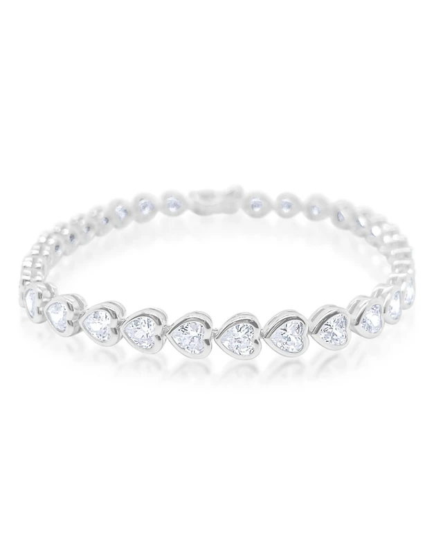 Etoielle White Gold Tone Heart Cut Cz Tennis Bracelet
