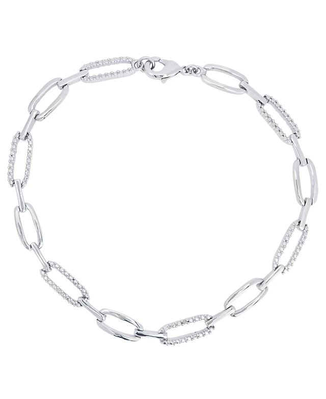 Diamond Oval Link Bracelet 1/4 ct tw Sterling Silver 7"