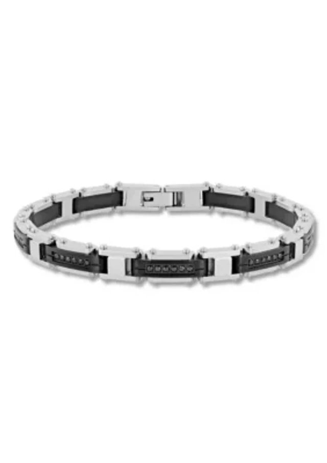 1/2 CT. T.w. Black Diamond Squared Curb Chain Link Bracelet in Stainless Steel with Black Ion-Plate - 8.5"