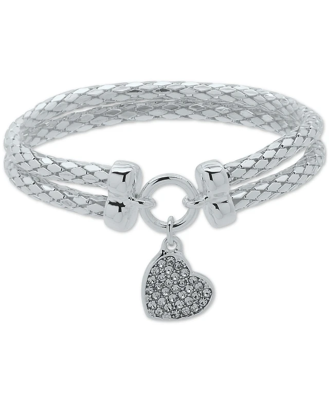 Sanrio Hello Kitty Women's Heart Lariat Bracelet, Silver-Plated and Pave Cubic Zirconia Bracelet Official License