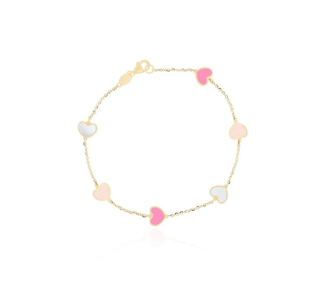Made in Italy Hollow Glitter Enamel Heart Outline and Marquise Link Bracelet in 10K Gold - 7.5"