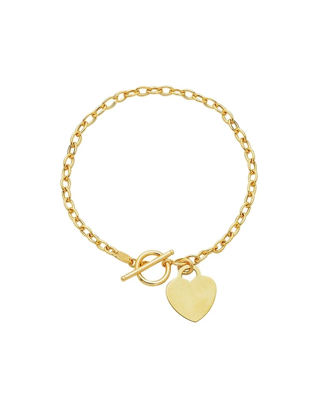 Devata Sweet Heart Charm with Paperclip Chain Bracelet in 14K Gold, 7 in, approx. 2.5 grams.