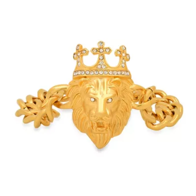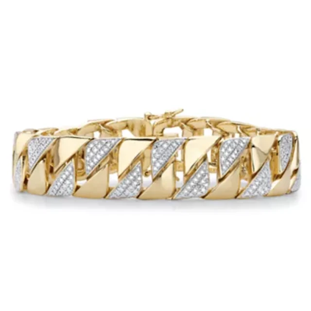 Men's 18k gold plated stainless steel and simulated diamonds cuban link bracelet