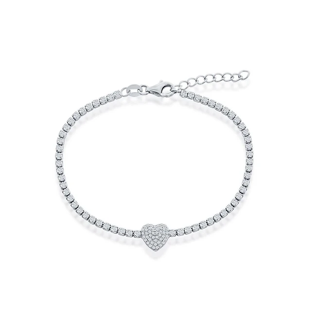 Cubic Zirconia Pave Heart Cable Link Bracelet