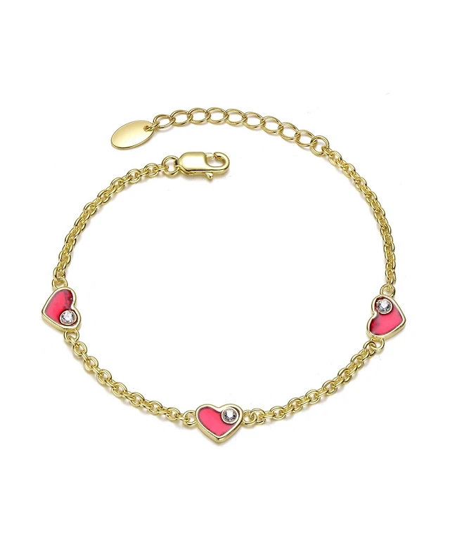 GiGiGirl Sterling Silver 14K Gold Plated Cubic Zirconia Heart Charm Bracelet