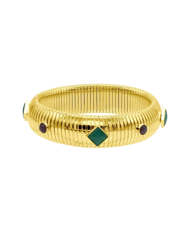 2028 14K Gold-Dipped Pave Crystal Heart Coil Spring C-Cuff Bracelet