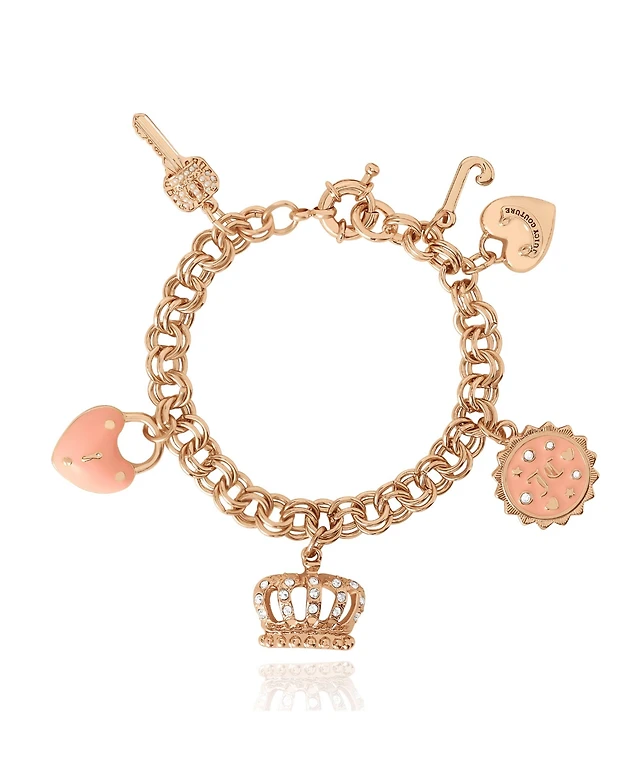 Womens Crystal 10K Gold Over Brass 10K Rose Gold Over Silver Heart Peanuts Snoopy Charm Bracelet