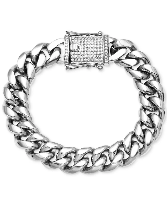 Diamond Station & Polished Open Link Bracelet (1/4 ct. t.w.) in Sterling Silver or Gold-plated Sterling Silver