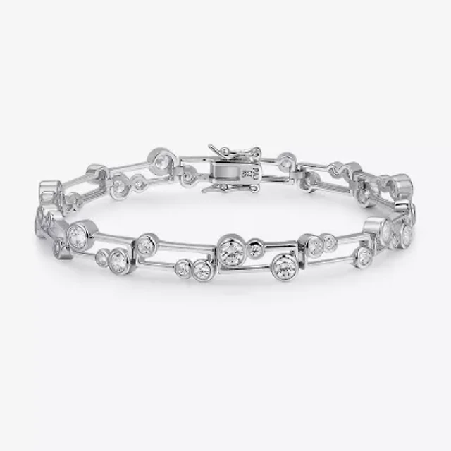 Diamonart Womens Cubic Zirconia Sterling Silver Round 7.25 Inch Tennis Bracelet