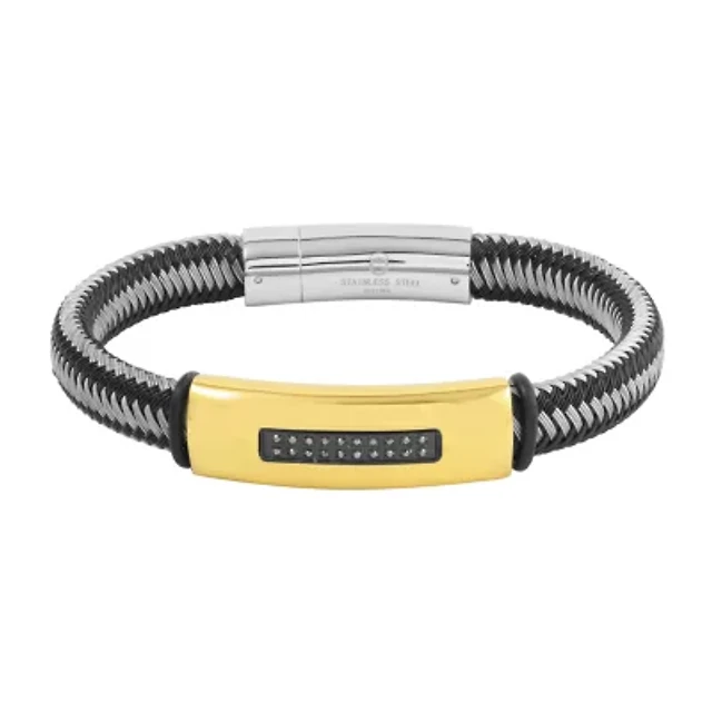 Steeltime Mens 18K Gold Over Stainless Steel Solid Curb Id Bracelet