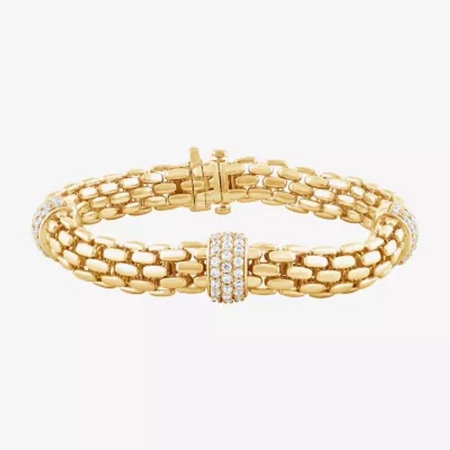 Cubic Zirconia 14K Gold Over Silver Round 7.5-7.75" Tennis Bracelet