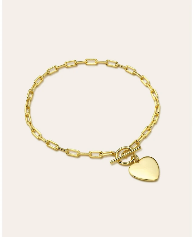 14k Gold Plated with Heart Link Chain Adjustable Bracelet