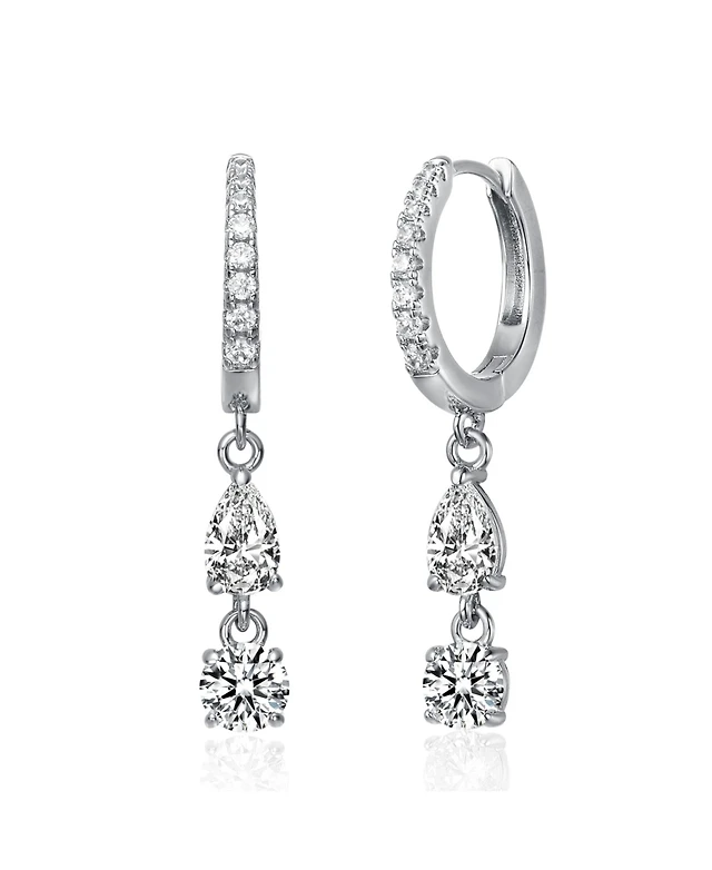Cubic Zirconia Three Stone Station with Chain Drop Solid Front/Back Earrings in 10K Gold