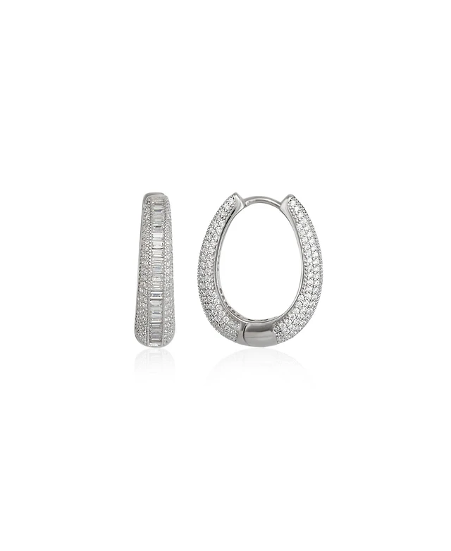 Metallo Stainless Steel, Geometric Cz Hoop Earrings