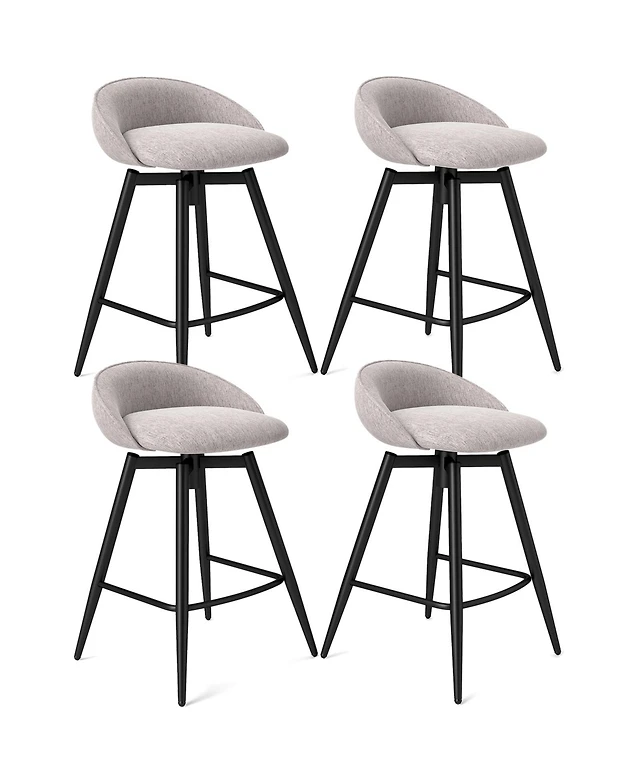 Gymax 25" Linen Upholstery Metal Frame Backrest, Footrest, 360° Swivel Seat, Comfortable Padding Set of 4 Bar Stools