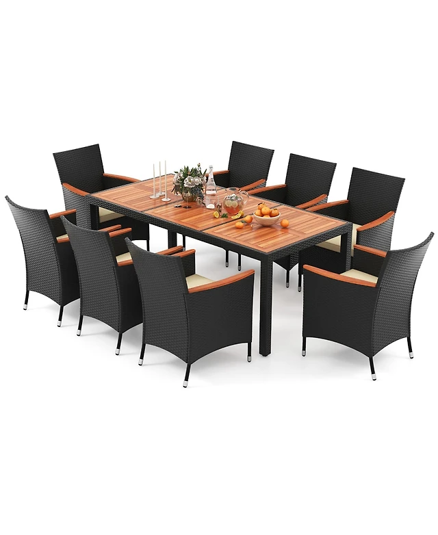 8 Pcs Acacia Wood Patio Conversation Set w/Cushions for Garden