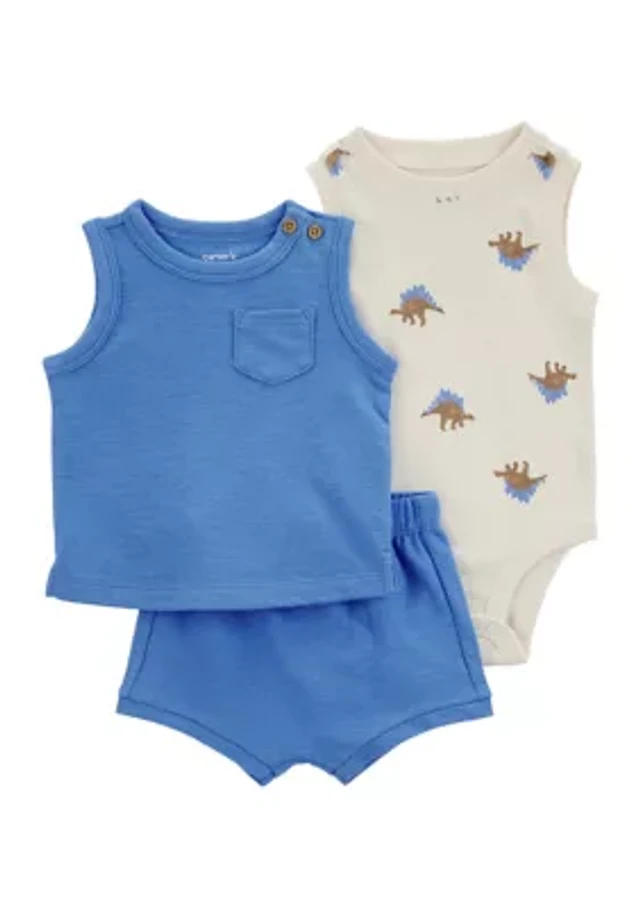 Baby Boys Three Piece Dinosaur Printed Bodysuit Set