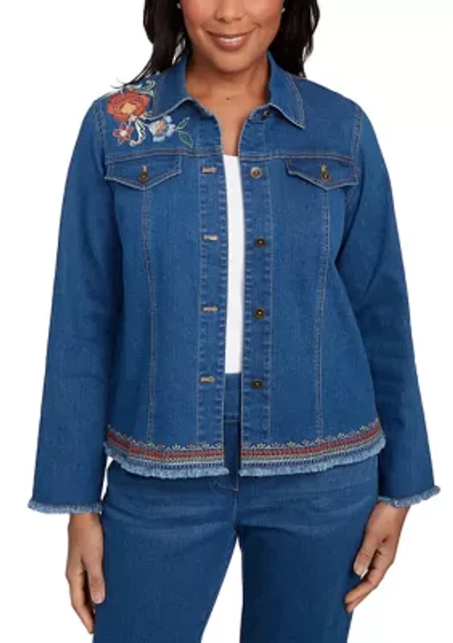 Gianni Bini Ellie Suede Collar Cropped Jean Jacket
