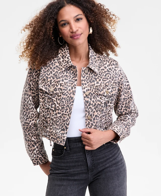 I.n.c. International Concepts Women's Leopard-Print Lace-Up Denim Jacket, Macy's Exclusive