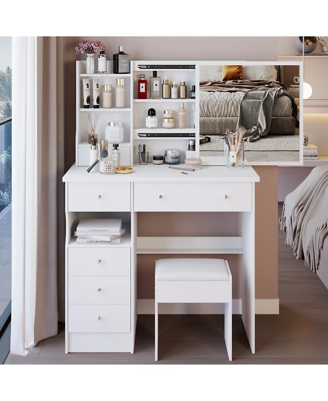 Guidecraft Madison Kids Desk with Hutch and Chair Set - White: Kids Wooden Bedroom Writing Table with Storage, Wood Study Table for Kids with Hutch