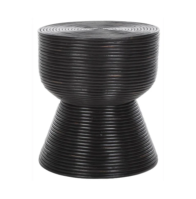 Square End Table with Rattan Swirl Design and Glass Top for Indoor Spaces