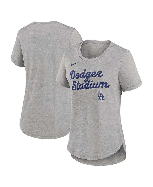 Nike Women's Heather Gray Los Angeles Dodgers Script Tri-Blend T-Shirt