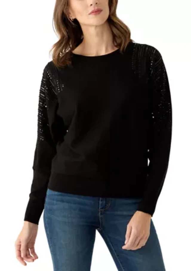 CeCe Women's Long-Sleeve Cheers Script Sweater