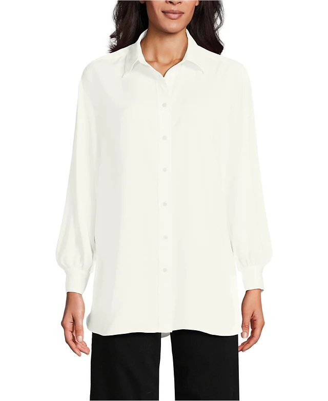 Lands' End Women's Linen Roll Sleeve Relaxed Tunic Top
