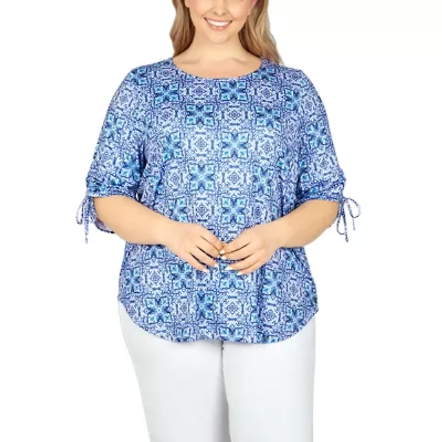 Liz Claiborne Womens Plus Crew Neck Elbow Sleeve T-Shirt