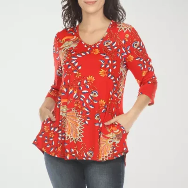 Liz Claiborne Womens V Neck 3/4 Sleeve Tunic Top