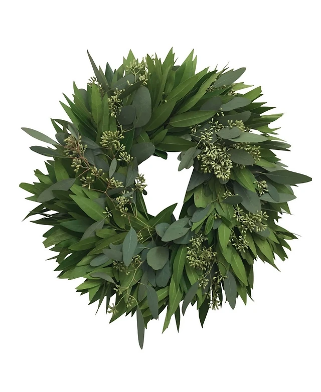 GreenishBlu Fresh Seeded Eucalyptus, Bay Leaf and Rosemary Wreath, 20"