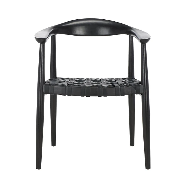 LeisureMod Markley Modern Leather Dining Arm Chair With Metal Legs