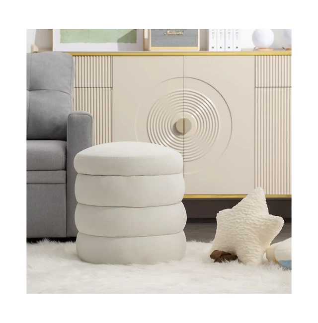 Round Velvet Ottoman Upholstered Footstool for Living Room or Bedroom Soft Polyester Fabric Comfortable Seating Option-The Pop Home