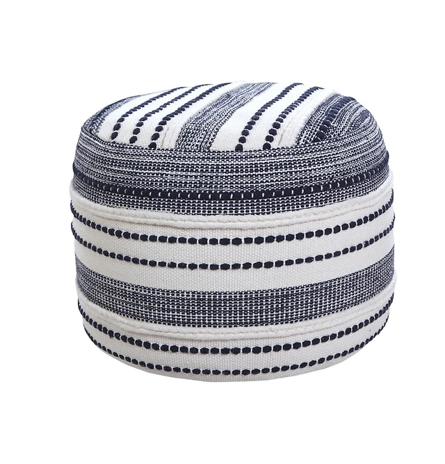 LuxenHome Upholstered Cream Modern Round Ottoman