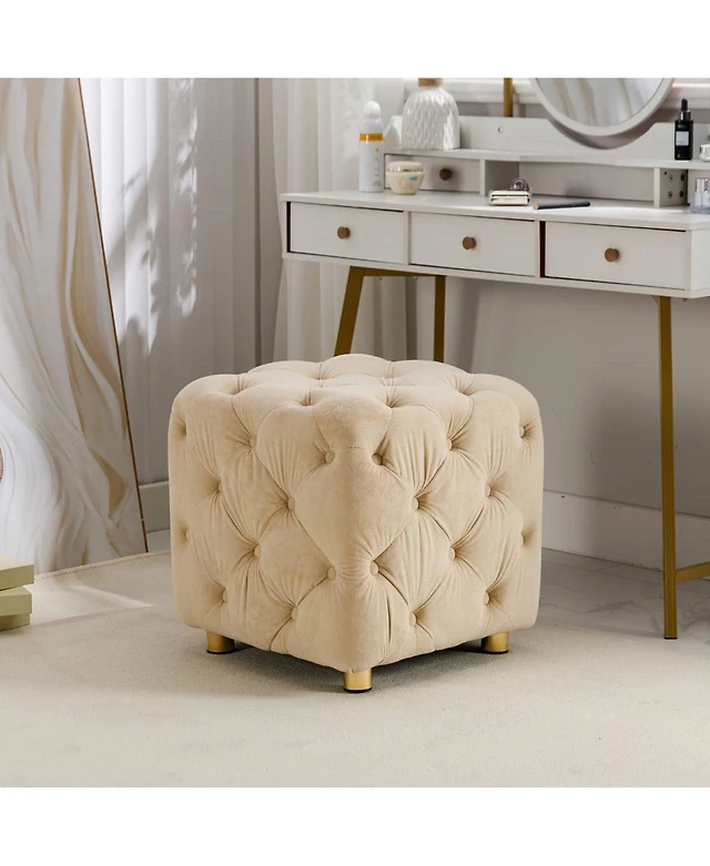 21.6" Wide Square Upholstered Cushion Ottoman Foot Stool