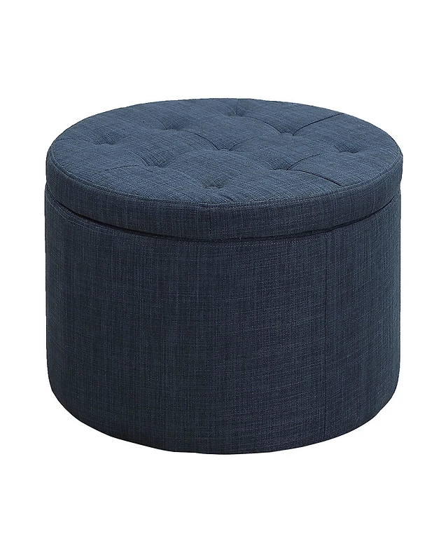 Streamdale Navy Blue Linen Tufted Ottoman w/ Wood Frame & Shelf