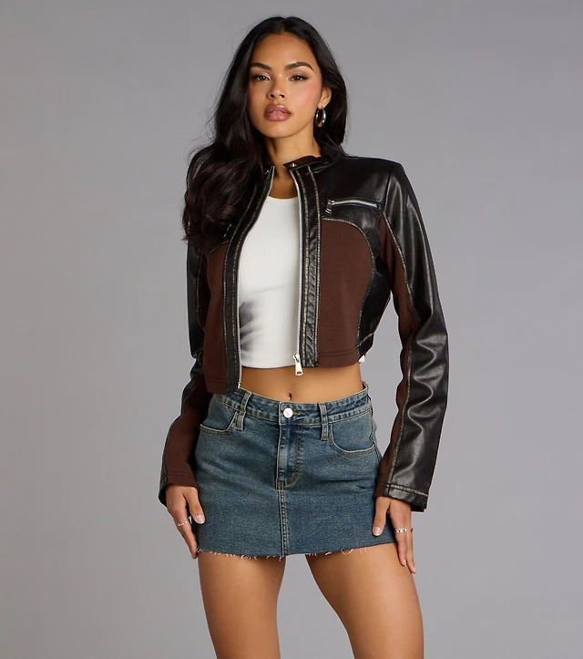 Ann Taylor Faux Suede Crew Neck Jacket White Fur/ Tan Women's
