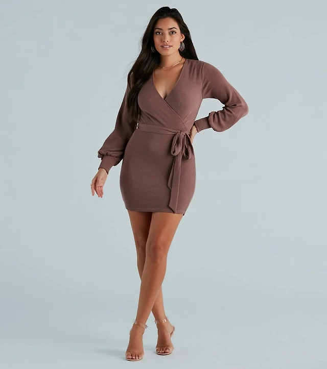 Julia Jordan Chiffon Long Sleeve Waist & Neck Tie A-Line Dress