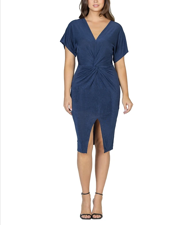 24seven Comfort Apparel Women's Short Sleeve V-neck Twist Front Dress