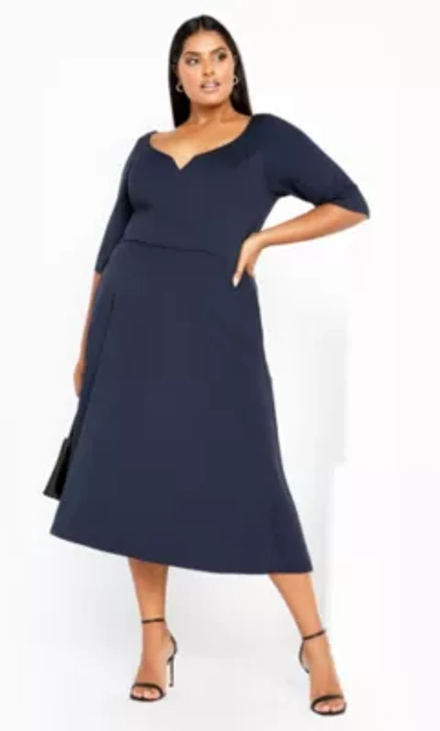 24seven Comfort Apparel Womens Plus Elbow Sleeve A-Line Dress