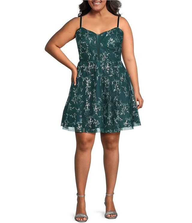 Celebrations by Sydney's Closet Fitted Sequin Plus Gunmetal Silver Party Dress