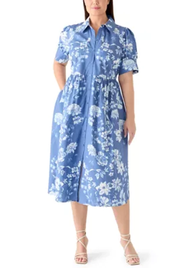 Plus Short Sleeve Button Front Midi Shirt Dress