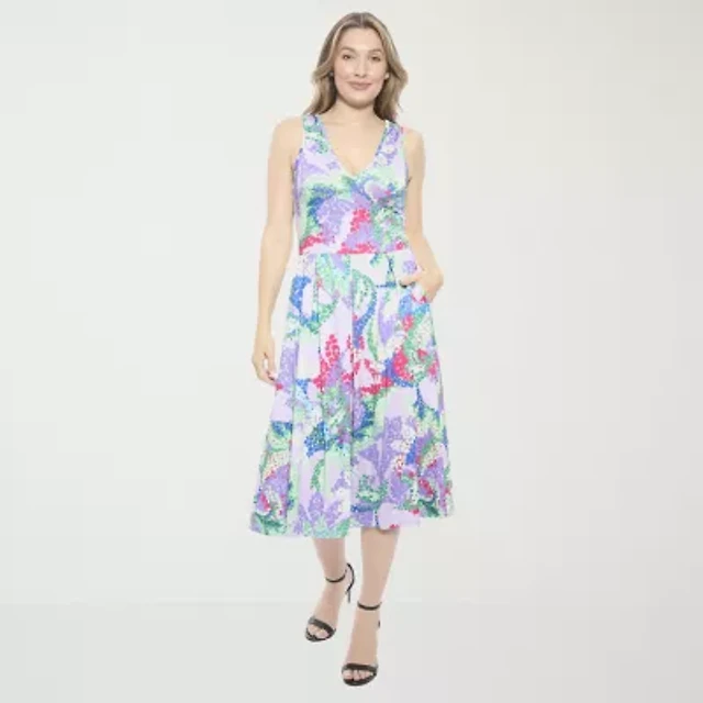 Melonie T Womens Plus Sleeveless Floral Midi Fit + Flare Dress