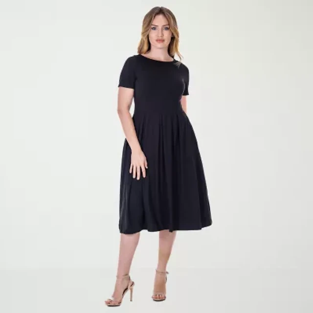 24seven Comfort Apparel Plus Fit and Flare Elbow Sleeves Dress